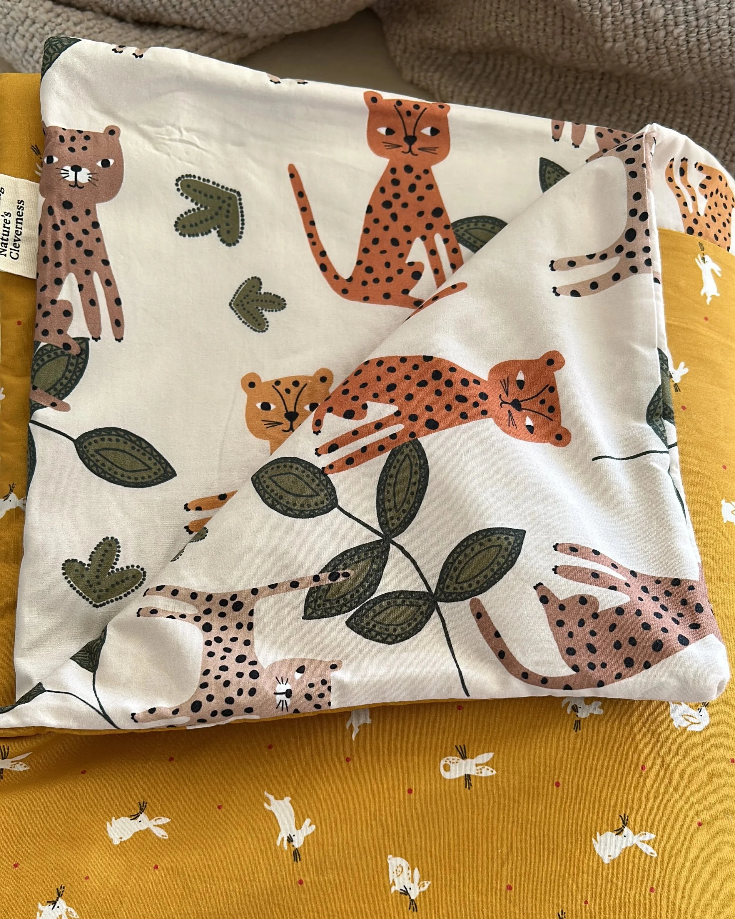 I have been having so much fun making baby quilts and play mats for friends on a very basic home sewing machine. Quite simply, pick your favourite cotton quilting fabric, and choose the weight of wool batting you want to use.